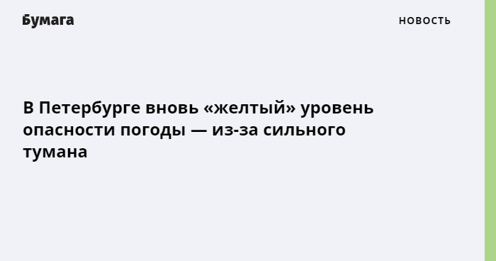 В среду, 15 декабря, в Петербурге вновь объявили «желтый» уровень опасности из-за погодных условий — на этот раз из-за тумана. Об этом сообщила администрация города.