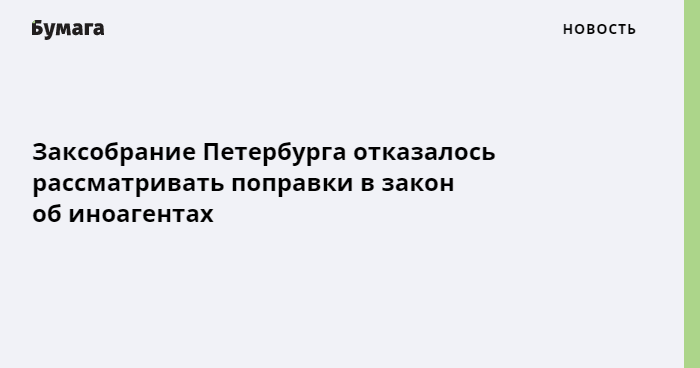 Заксобрание Петербурга отказалось рассматривать поправки в закон об иноагентах