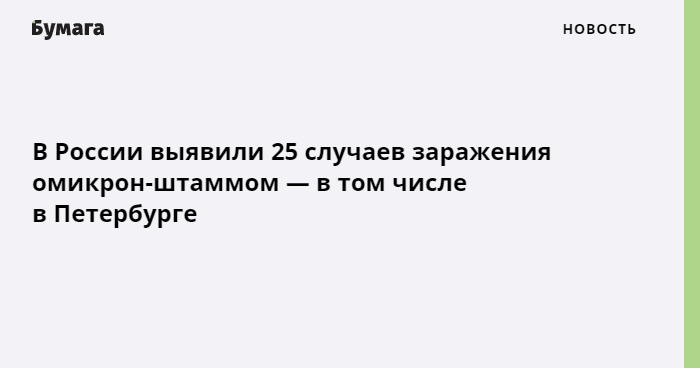 В России к 16 декабря выявили 25 случаев заражения омикрон-штаммом коронавируса, в том числе зафиксированы случаи заболевания в Петербурге. Об этом сообщила вице-премьер РФ Татьяна Голикова, ее слова приводит «Интерфакс».