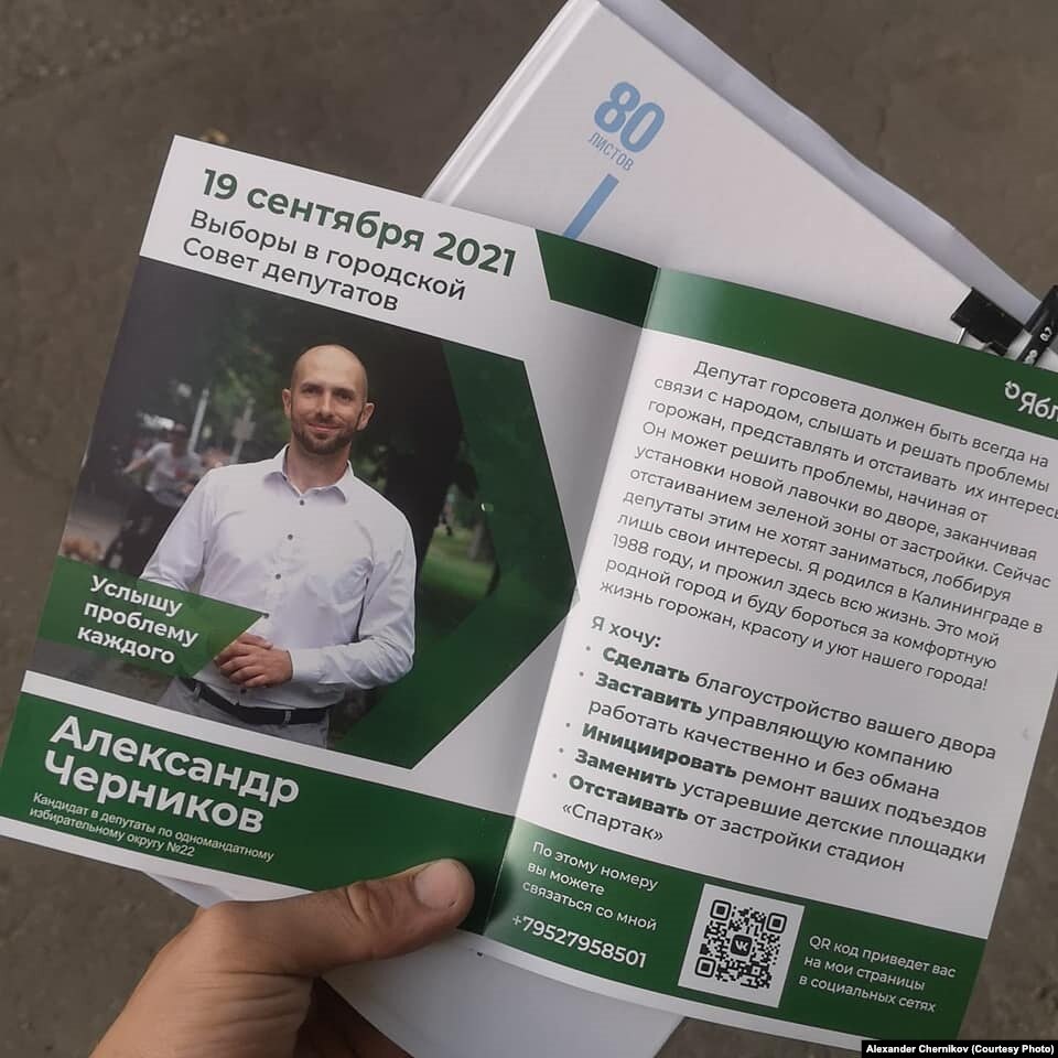 В Калининграде у Черникова был бизнес, связанный с грузоперевозками. Но после ухода из штаба политические амбиции остались. Летом он выдвинулся в депутаты городского совета Калининграда от партии "Яблоко". Кампанию вел сам, на свои средства и на донаты. Принадлежность к "Яблоку" лишь позволила ему не собирать подписи.