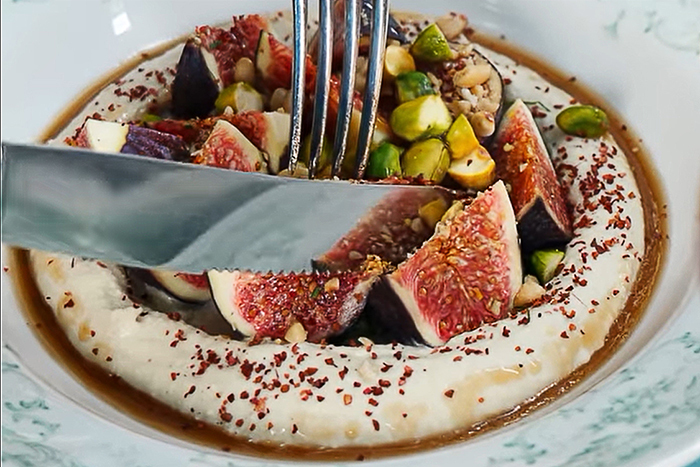 — В крошечном ресторанчике Арама Мнацаканова на Большой Морской всегда романтично — в том числе из-за белоснежных папах, парящих над маленькой открытой кухней. В меню собрали эстетскую грузинскую кухню: хрустящую капусту по-гурийски, джонджоли с лепестками красного лука, острые маринованные перцы, душистый лобио и табуле с булгуром, зеленью и заправкой на лимонном соке. Хумус летом подают с инжиром, а зимой — с терпкой хурмой. Цены немаленькие, но к каждому блюду вам принесут горячий грузинский хлеб с душистым кахетинским маслом.