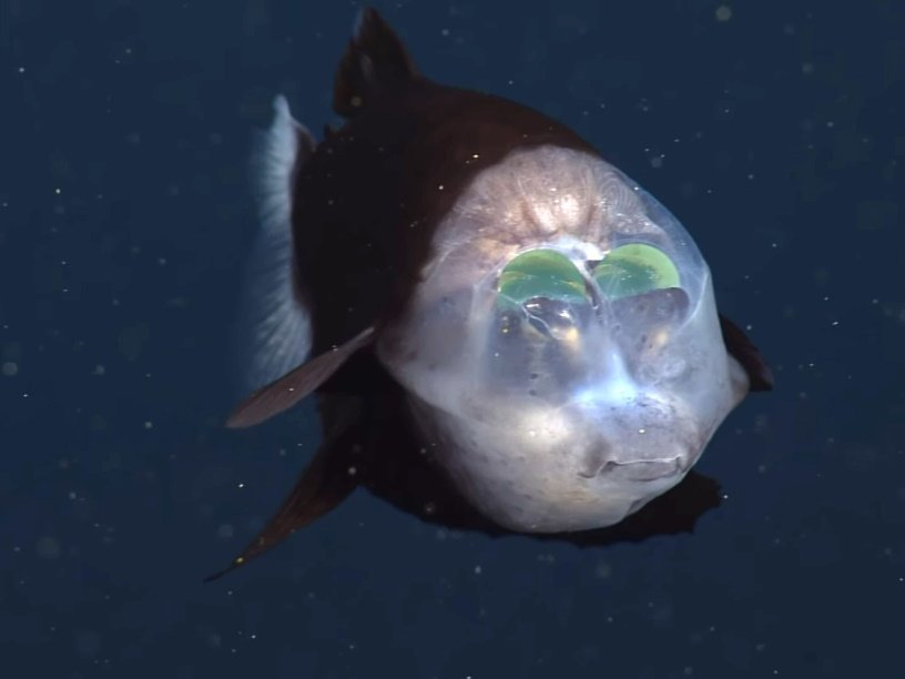 Ученые из Исследовательского института и аквариума залива Монтерей (Monterey Bay Aquarium Research Institute, MBARI) смогли получить видеозаписи с редкой глубоководной рыбой — бочкоглазом. Эта рыба знаменита тем, что ее голова сверху и по бокам покрыта прозрачной оболочкой, напоминающей купол. Пространство под оболочкой заполнено прозрачной жидкостью, защищающей крупные зеленые глаза рыбы.
