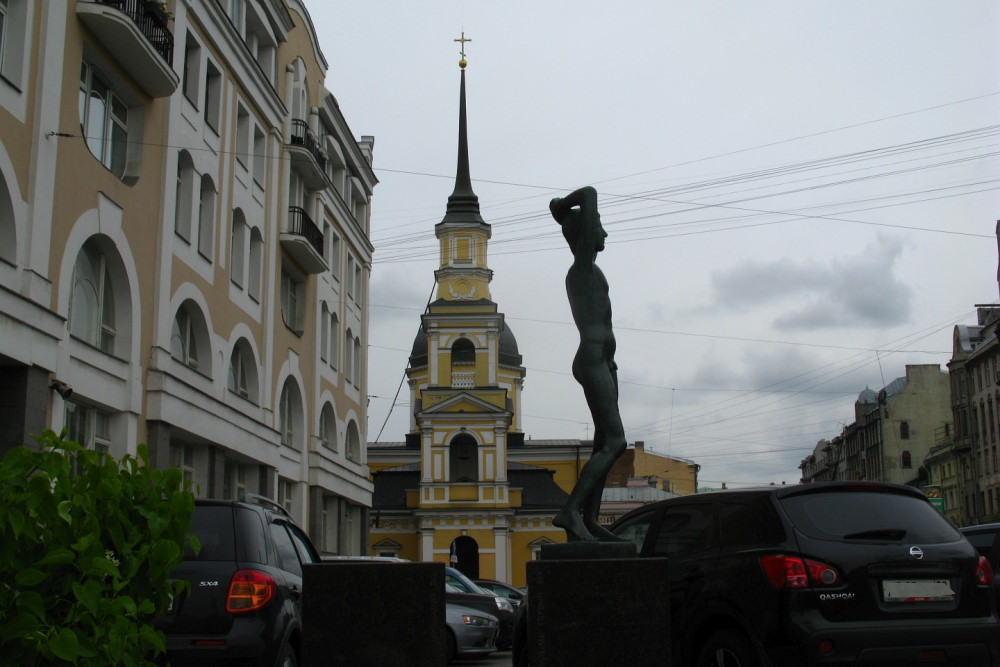Завершит небольшую прогулку фонтан «Река времени» на углу Белинского и Моховой. Фонтан украшает скульптура «Новый век» в виде мальчика с закинутыми вверх руками. Скульптуру открыли в 2000 году, когда в Петербурге проходил чемпионат мира по хоккею. Первоначально на этом месте хотели установить фигуру лося, бывшего маскотом турнира, но в итоге от этой идеи отказались