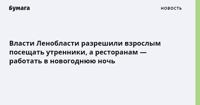 Власти Ленобласти разрешили взрослым посещать утренники, а ресторанам — работать в новогоднюю ночь