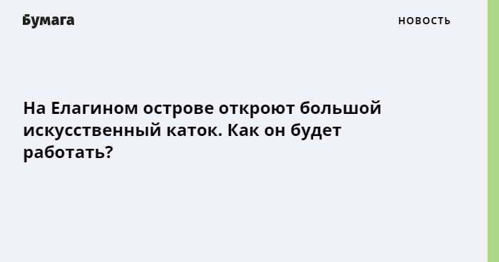 На Елагином острове откроют большой искусственный каток. Как он будет работать?
