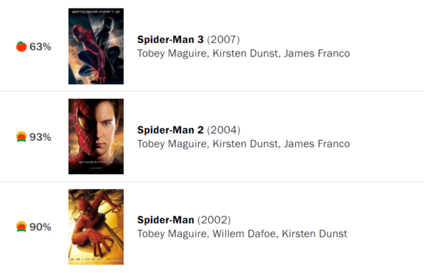 И если к Тоби Магуайру внимание было приковано ещё до релиза, а многие и раньше называли его лучшим из трёх «пауков», то такая любовь к Эндрю Гарфилду во многом стала неожиданностью: из всех трёх экранизаций фильмы с его участием критиковали больше всего — а после провала второй части Sony не стала заканчивать трилогию.