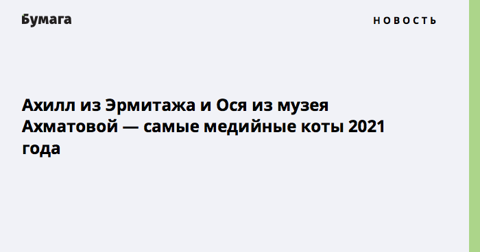 Ахилл из Эрмитажа и Ося из музея Ахматовой — самые медийные коты 2021 года. «Бумага»