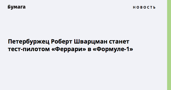 Петербуржец Роберт Шварцман станет тест-пилотом «Феррари» в «Формуле-1»