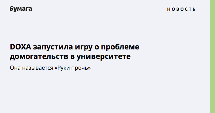 DOXA запустил игру «Руки прочь» о проблеме домогательств в университете. Это браузерный квест, основанный на реальных историях и опыте работы студенческого журнала.
