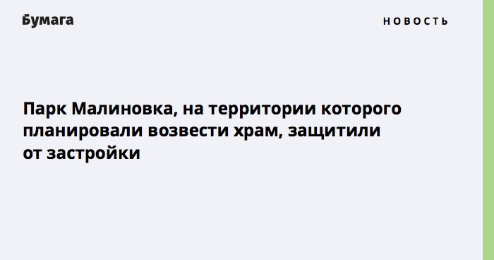 Парк Малиновка, на территории которого планировали возвести храм, защитили от застройки