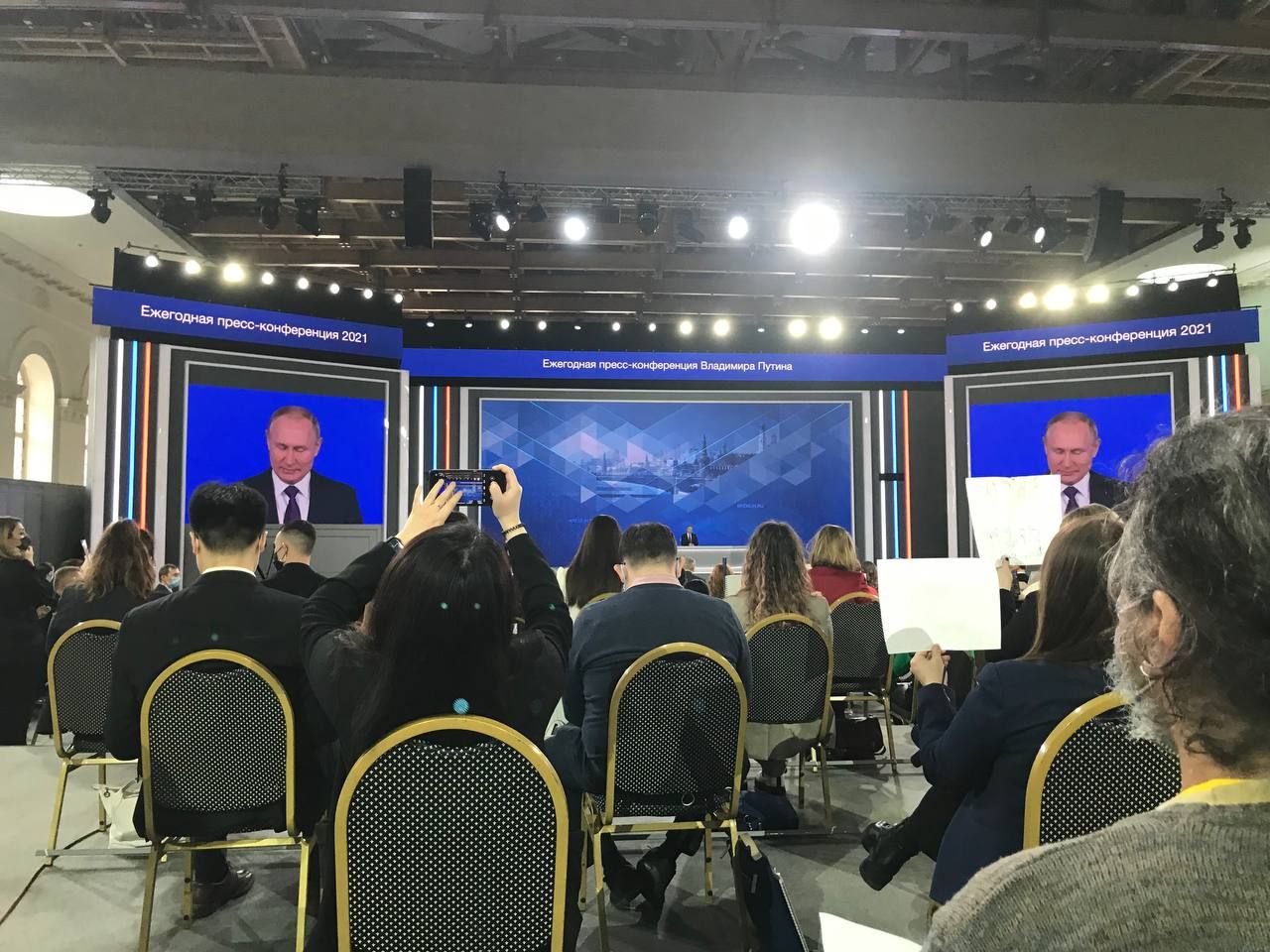 В этом году Путин и журналисты собрались в Манеже. На пресс-конференцию собрали около 500 человек.
