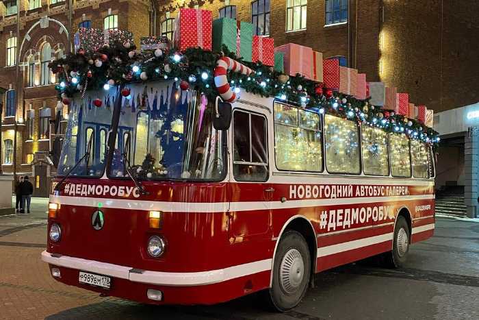 Автобус с Дедами Морозами, украшенный гирляндами и горой подарков, курсирует по городу с 21 по 30 декабря. Встретить его можно с 16 до 21 часа.