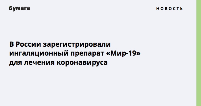 В России зарегистрировали ингаляционный препарат «Мир-19» для лечения коронавируса