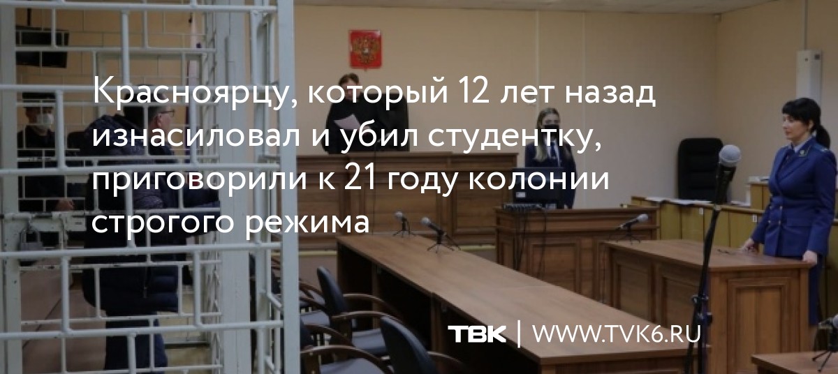 Красноярца, который 12 лет назад изнасиловал и убил студентку, приговорили к 21 году колонии строгого режима