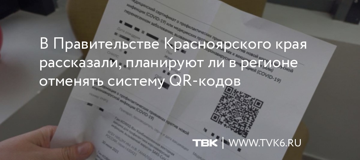 В Правительстве Красноярского края «ТВК Красноярск» сообщили, что отменять QR-коды в регионе не планируется.