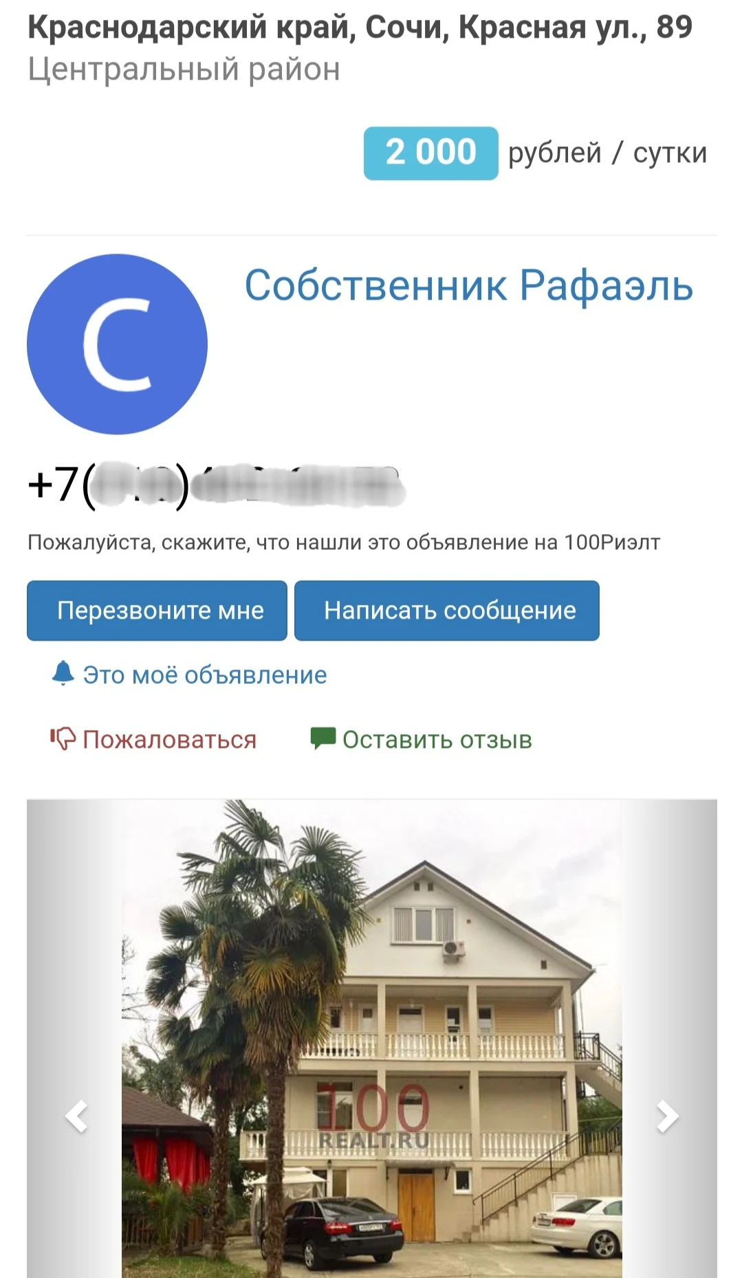 Скриншот объявления об аренде жилья Рафаэля Абрамяна