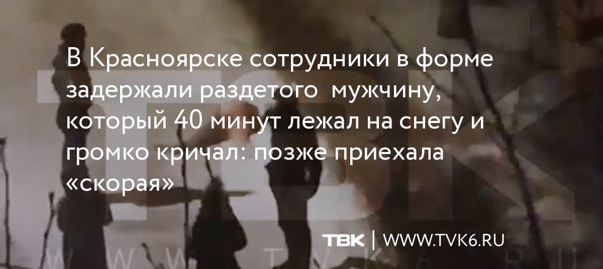 В Красноярске сотрудники в форме задержали раздетого мужчину, который 40 минут лежал на снегу и громко кричал: позже приехала «скорая»