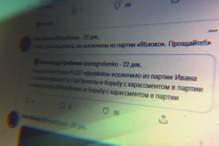 - В декабре из петербургского «Яблока» исключили еще трех человек: за поддержку Каца и «Умного голосования» — и критику сопартийца (предположительно, речь тоже о Кобринском).