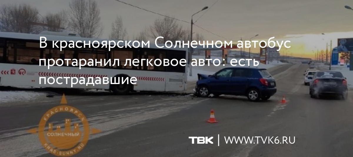 В красноярском Солнечном автобус протаранил легковое авто: есть пострадавшие