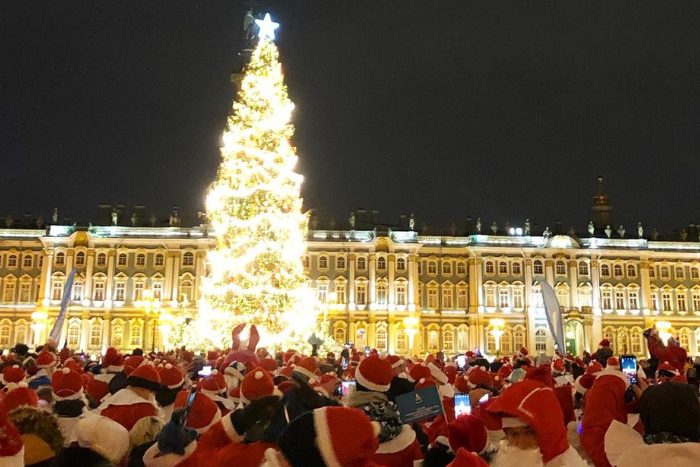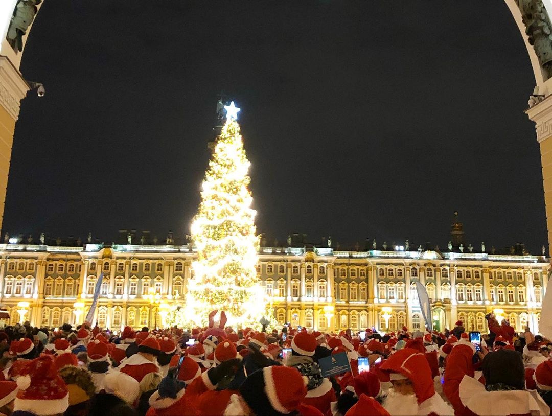 Сотни людей в костюмах Дедов Морозов устроили забег в центре Петербурга. Как это было