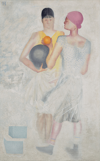 © Государственная Третьяковская галерея Юрий Пименов. Две девушки с мячом. 1929. Холст, масло Возможно ли в 2021 году комментировать работы художника только его собственными текстами, написанными в определенную эпоху и в определенных обстоятельствах? Цитаты не датированы, но остается ощущение, что мы и сейчас смотрим на Пименова из шестидесятых или семидесятых годов. Так возникают казусы. Вот тот самый момент изменения — переход от ОСТ-овских 1920-х к 1930-м, названный импрессионизмом (впрочем, не соцреализмом — что уже хорошо). Реплика на стене называет 1932 год временем счастья, легкости, упоения натурой, за которой из его поля зрения пропали (немного деланный вздох) отзвуки «каких-то войн» и 1937 года. Но в метре от этой цитаты мы видим другой текст, где художник признается, что в 1932 году находился в глубочайшем упадке, депрессии, не знал, куда двигаться дальше. Как быть зрителю? Так что же происходило в начале тридцатых? Упоение от портретов и натюрмортов, «улиц, блестящих от дождя» и фактуры женской кожи — или кризис? Нет работы, нет денег, нет перспектив?