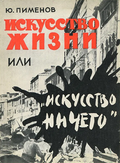 © «Искусство» Пименов Ю. Искусство жизни или «искусство ничего». М., 1960 Пименов — самый кинематографичный из советских художников, больше Дейнеки. Так интересно было бы посмотреть на него в контексте кино 20-х (ФЭКСы!), потом 30-х и, конечно же, оттепельных фильмов. Но на выставке нет ни кадров из созданных им фильмов, ни духа или какой-то реальности театра — хотя бы фотографий постановок. Нет книг, материальной и физической реальности его мира. А кого и как вырастил Пименов во ВГИКе, где он преподавал с 1945 по 1972 год?