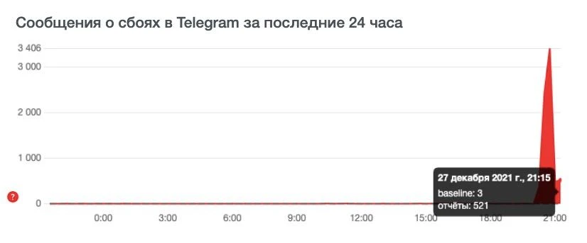 Пользователи из России, Украины и Беларуси сообщили о неполадках в работе Telegram. По данным Downdetector, с 20:32 мск более 3 тысяч пользователей пожаловались на неполадки в работе мессенджера. К 21:04 мск число жалоб значительно уменьшилось — до 492, однако к 21:15 мск вновь превысило 500.