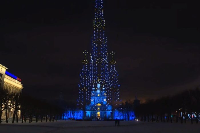 Вечером 26 декабря на площади Растрелли дроны выстроились в фигуру нереализованной колокольни Смольного собора высотой 168 метров. В шоу задействовали не менее тысячи дронов, сообщает телеканал «Санкт-Петербург».