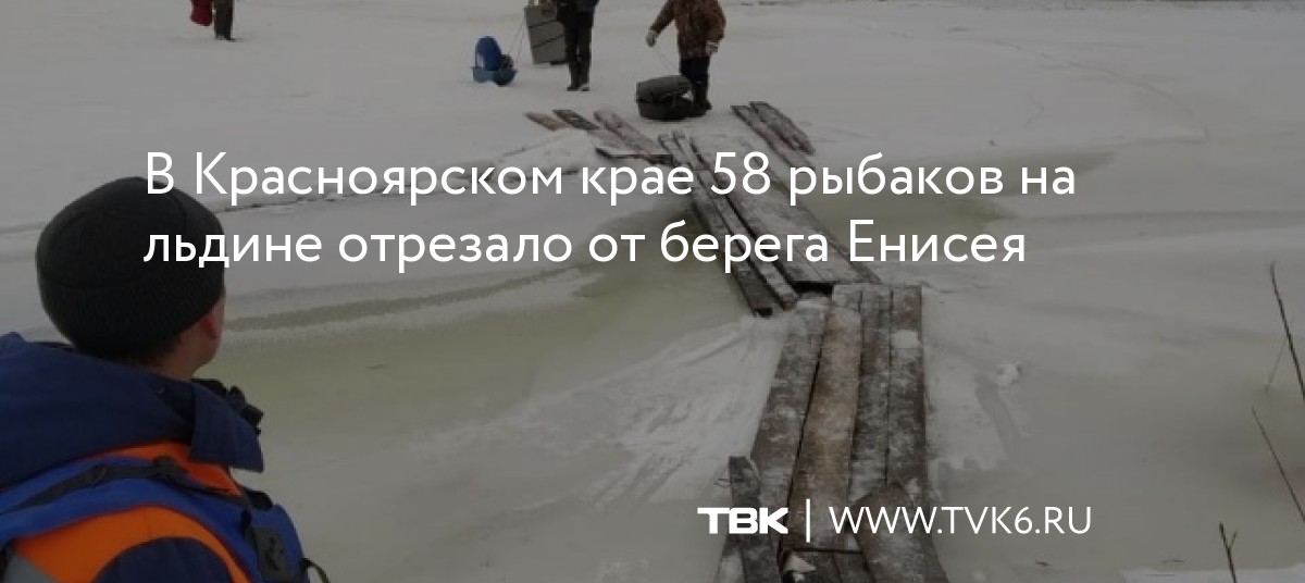 Инцидент произошел 26 декабря. Из-за резкого подъема воды льдина начала откалываться и 58 рыбаков оказались отрезанными от берега Енисея, сообщает Агентство ГО и ЧС Красноярского края.