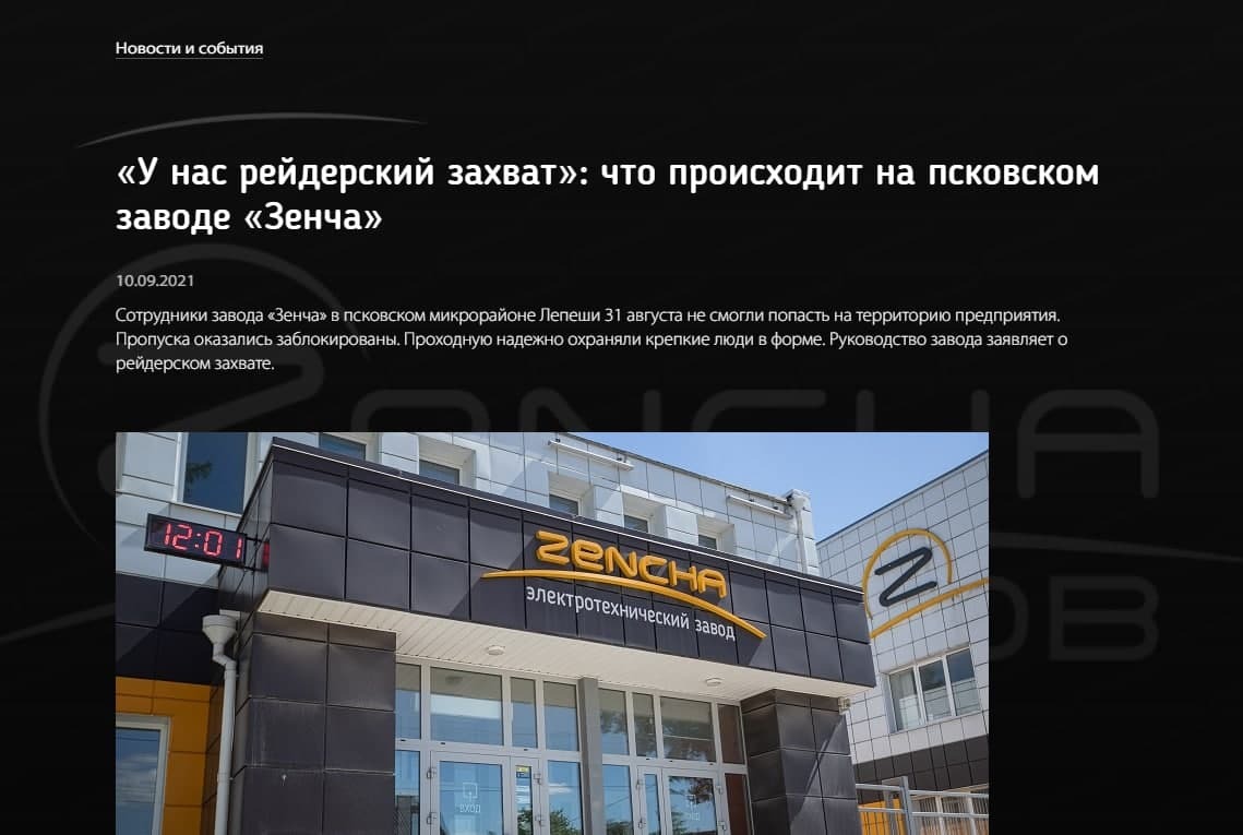 Представители завода «Зенча-Псков» назвали «полностью искажённой и абсолютно недостоверной» информацию о том, что территория завода была арестована, а работников и руководство не пустили на территорию предприятия, а позже и вовсе отправили в неоплачиваемый отпуск». При этом на сайте предприятия опубликована перепечатка текста из одного из провластных СМИ, где говорится о том же самом, а оппоненты нынешнего руководства обвиняются в рейдерском захвате.