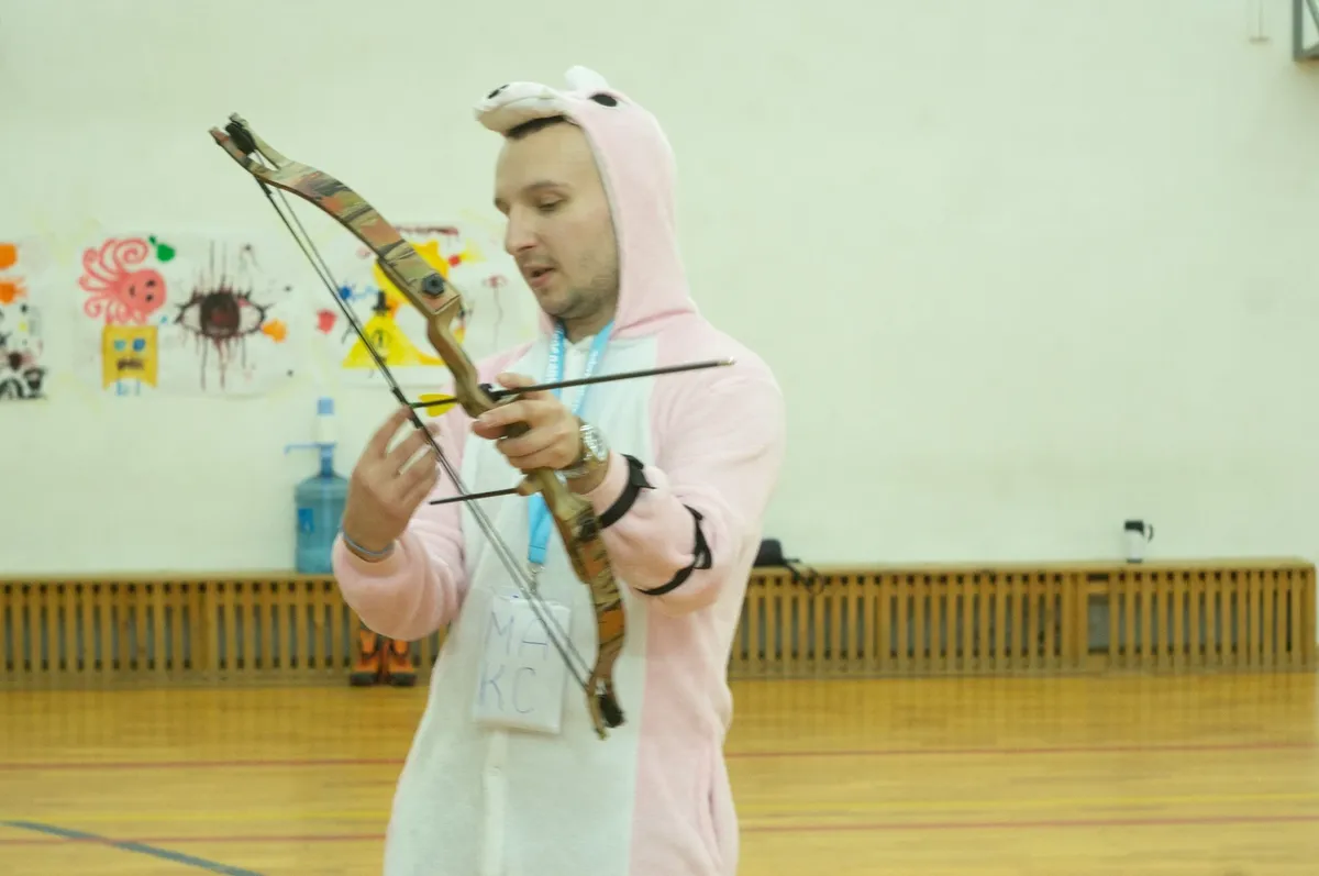 На следующее утро — стрельба из лука, мастера я заприметила еще вчера — такой веселый парень в костюме розового дракона перемещался в Атриуме от одной тусовки к другой и всюду был принят на ура — его никто не хотел от себя отпускать. В перерыве между стрельбой выясняю, что дракона зовут Максим Хапугин, он родом из Москвы, ему 21 год, учится на 4-м курсе МГТУ имени Баумана на проектировщика ракетных двигателей. А когда ему было 15, он заболел раком легких и попал уже после выздоровления на реабилитацию в ирландский лагерь «Барретстаун», по подобию которого во многом и создавался «Шередарь».