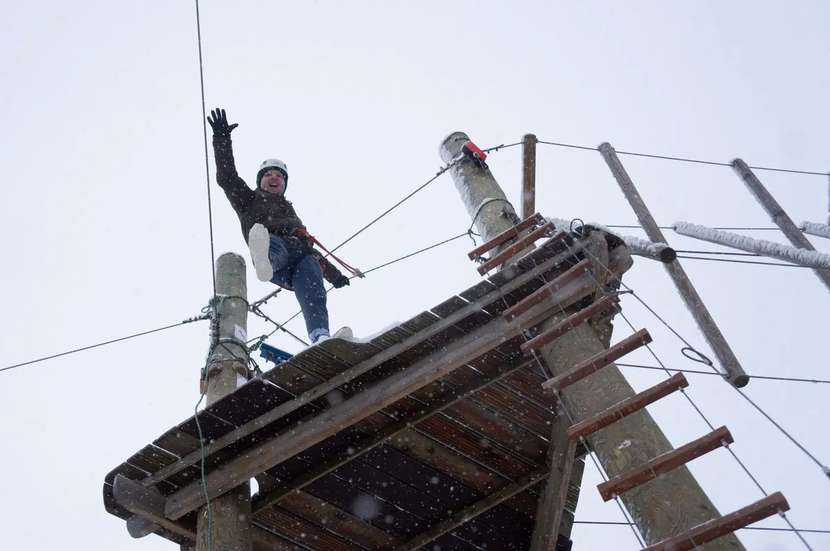 — Здесь ребята от 13 до 17 лет, и вот они веревочный парк так серьезно, смело и быстро проходят, как даже я не могу. Мне вообще в начале смены всегда немножко страшно: первый уровень высоты — 3–3,5 метра, а второй — 7! Потом привыкаешь. Но мне вначале даже на нижнем уровне страшно, а они сразу на верхний — и вперед, как там у Киплинга: «дольше одной минуты мангусты не боятся…»