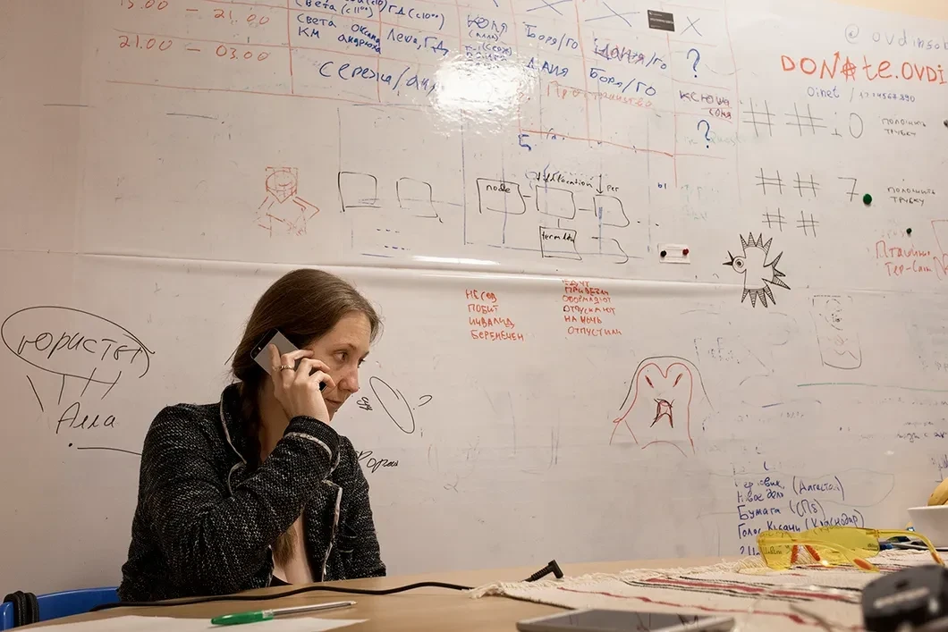 — Изначально было двое создателей: Григорий Охотин и Даниил Бейлинсон. Потом работать в проекте стали семь человек, потом — 12, потом — 20. Но количество участников зависело от ситуации. Десять человек не могут справиться, потому что «ОВД-Инфо» — это не только юридическая помощь. На больших акциях мы всегда привлекали волонтеров. Потому что принять 43 звонка одновременно невозможно. Так что проводился набор людей, многие к нам обращались сами. Ведь не все готовы ходить на акции, но помочь все хотят.