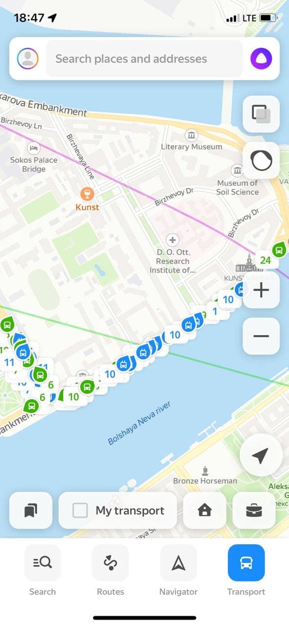 Судя по данным «Яндекс.Карт», наземный общественный транспорт в центре Петербурга полностью замер: на дорогах видны плотные скопления автобусов и троллейбусов. Внимание на это обратила участница Клуба друзей «Бумаги» Маша.