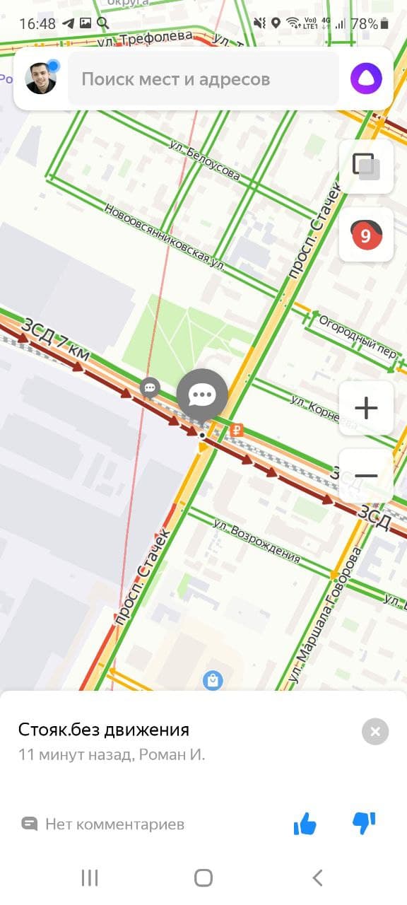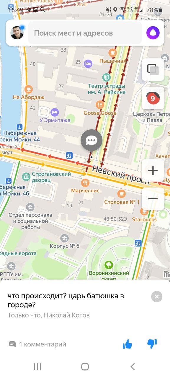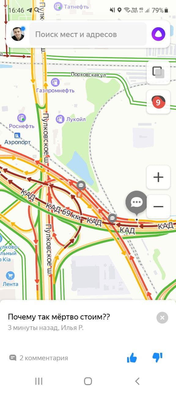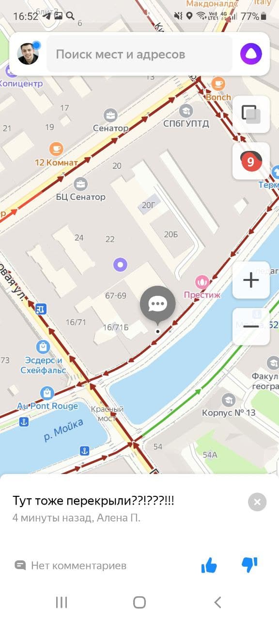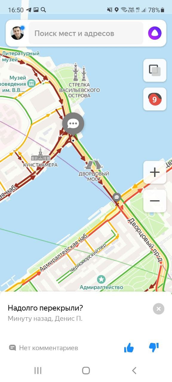 Развязки ЗСД и центральные магистрали Петербурга на «Яндекс.Картах» вечером окрашены в темно-красный цвет. Водители оставляют множество недоумевающих комментариев, при этом сообщений с упоминанием Путина в сервисе найти почти не получается.