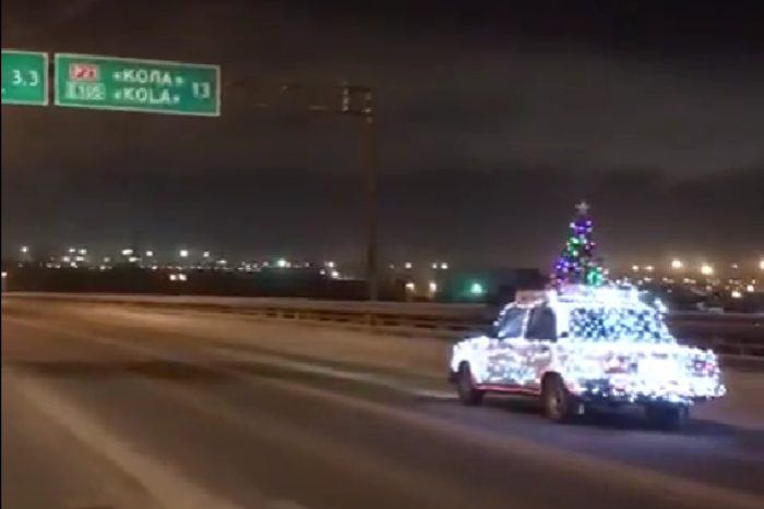 Петербургский водитель украсил машину гирляндой, а на крыше установил новогоднюю ель 🎄