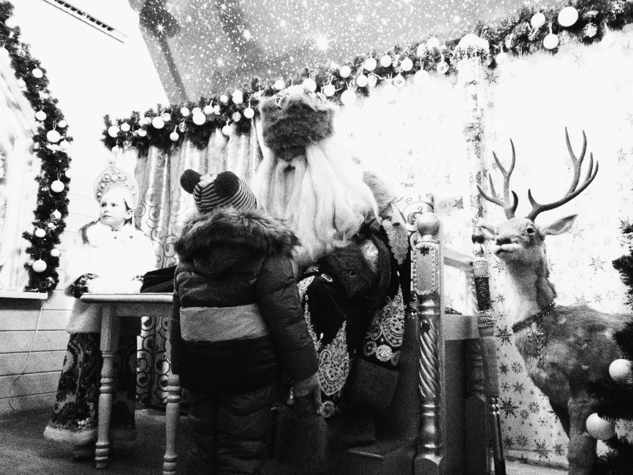 — Два года назад написал письмо нашему главному Деду Морозу в Великий Устюг. Рассказал немного, как мы тут работаем, приложил видео и попросил себе новую шубу. Очень надо было вторую, на смену — дети-то на мне виснут, шуба быстро пачкается. Ждал-ждал ответа, а потом мы собрались и сами сшили шубу, расшивали янтарем и стразами два месяца! Но вышла, сами видите, хорошо.