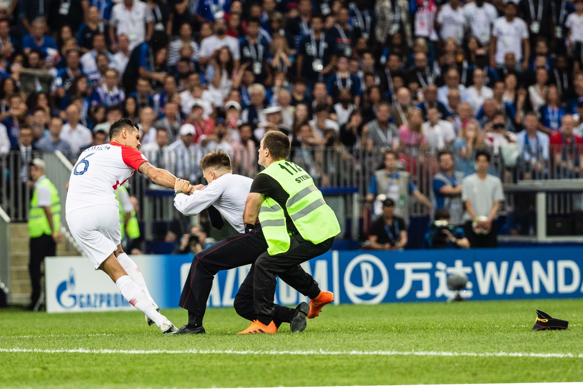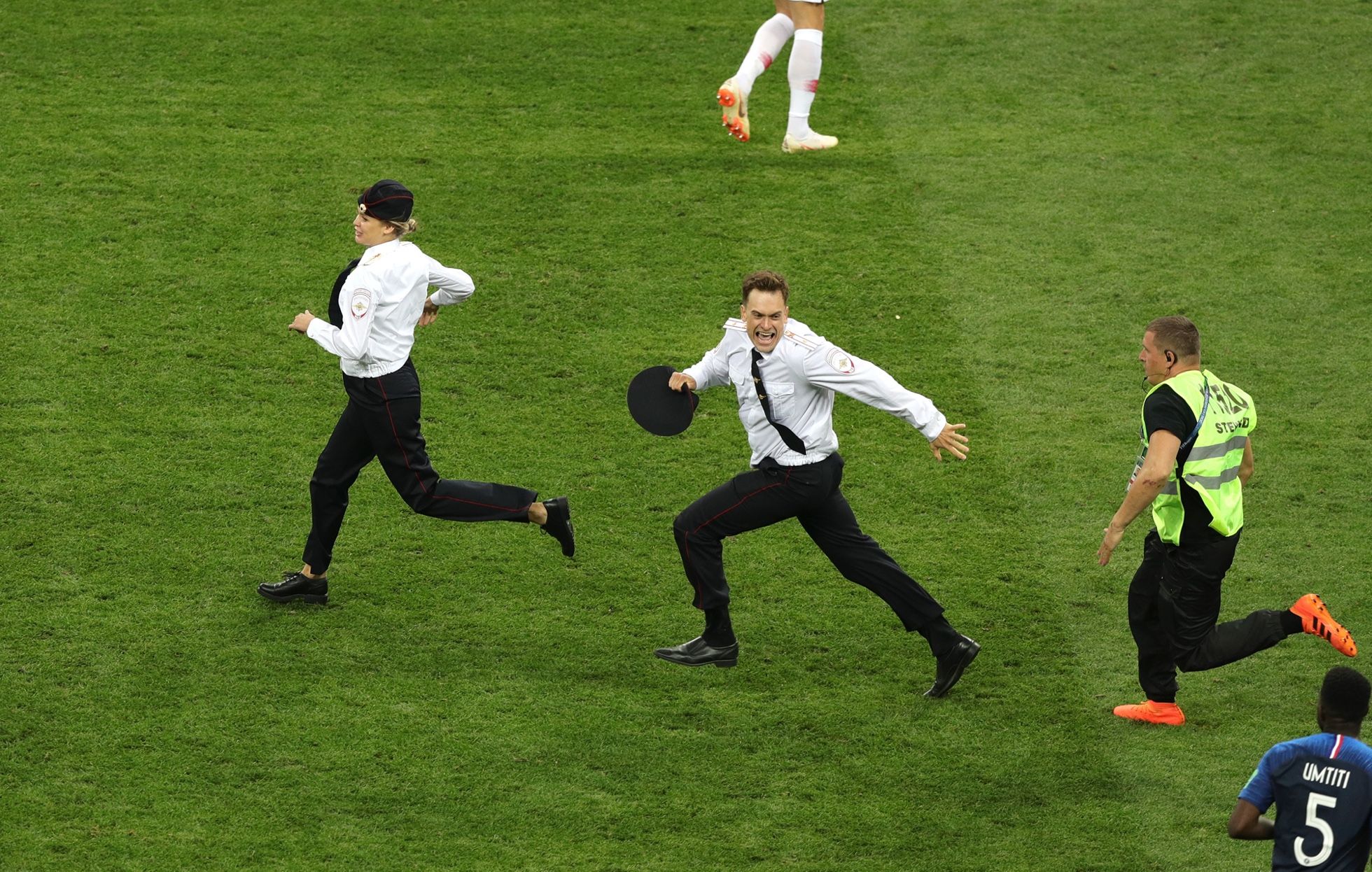 15 июля 2018 года на московском стадионе «Лужники» проходил финальный матч чемпионата мира по футболу между сборными Франции и Хорватии. В начале второго тайма на поле, прервав атаку хорватов, выбежали четыре человека в полицейской форме. Уже через несколько минут их поймали сотрудники службы безопасности; кубок мира выиграла Франция.