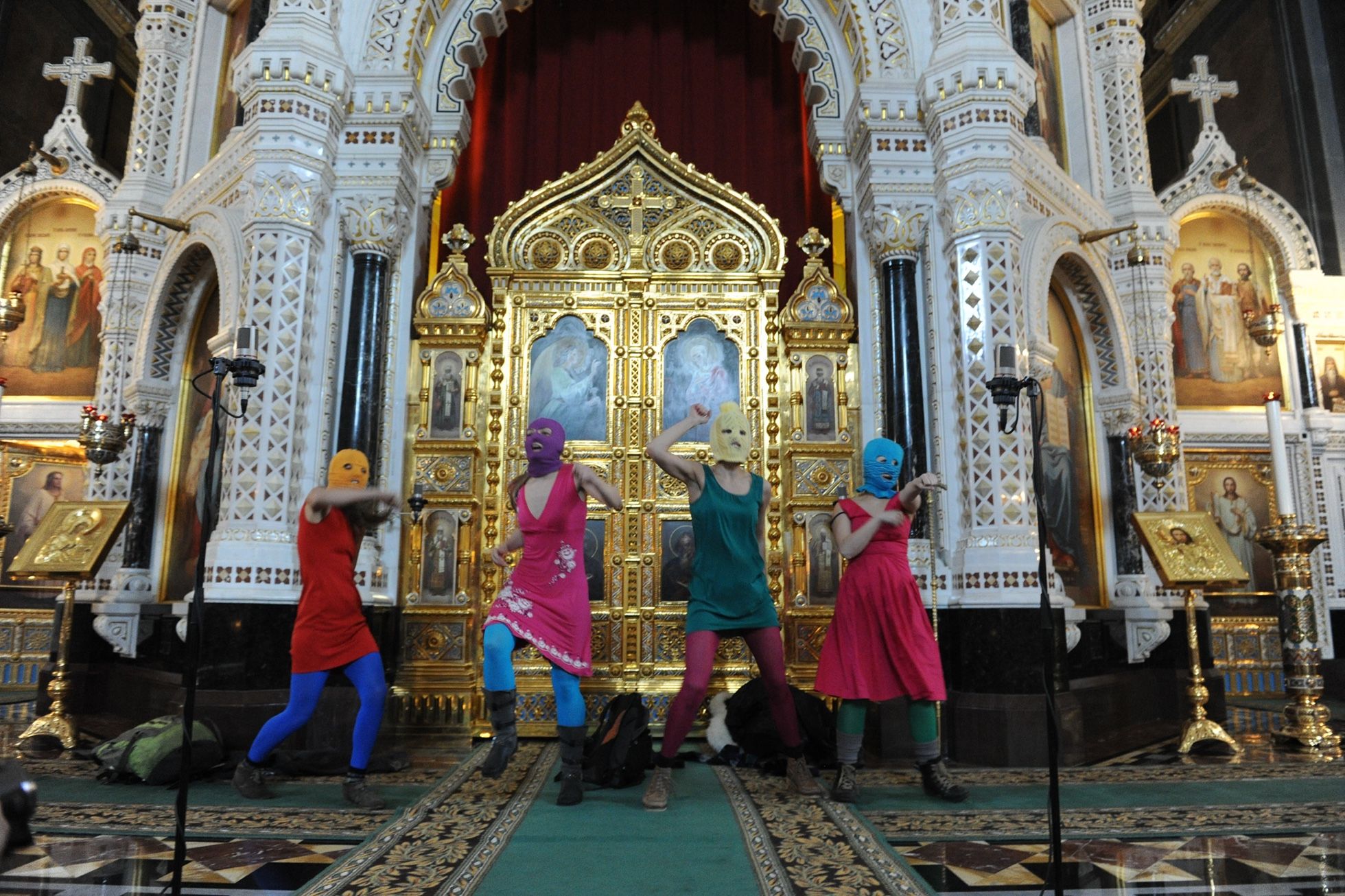 В храме Христа Спасителя прогнать Путина у Богородицы просили пять девушек в балаклавах. Имя четвертой участницы — художницы и музыканта Дианы Буркот — стало известно только через восемь лет после акции, в 2020 году.