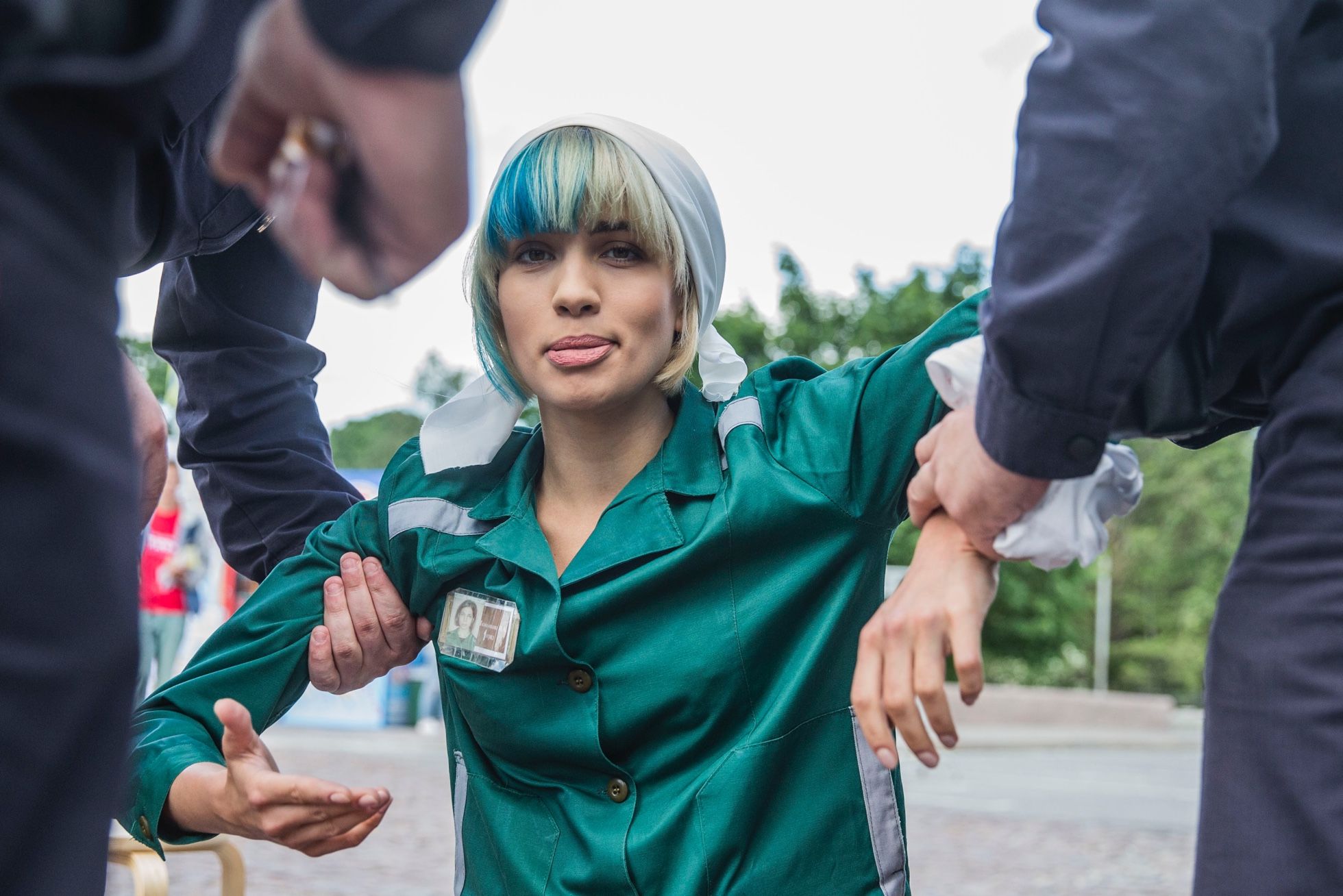 «Мы едем, вокруг восемь „эшников“. Нам никто ничего не рассказывает. Рома поворачивается ко мне и говорит: „Ника, что думаешь — уголовка?“ И в этот момент я в первый раз подумала: „Да, вероятнее всего, уголовка“», — вспоминает акционистка.