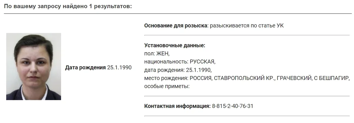 В карточке указано, что розыск ведется «по статье УК», но сама статья не называется.