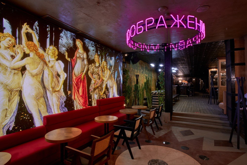 В ресторане на Большой Морской улице планируют проводить шоу-программы, концерты и выступления иммерсивного театра. Заведение заняло четыре зала, рассчитанные на 144 посадочных места. Пространство оформили в стиле эклектика, на стенах вывесили арт-объекты. Кухней заведения руководит Эмиль Ковтун, работавший в нескольких ресторанах холдинга Ginza Project. Он объединил в меню европейские и азиатские блюда: заказать можно, например, стейк рибай и куриный попкорн. В барную карту включили коктейли, вино и пиво, причем гостям предлагают вариант «пивного безлимита».