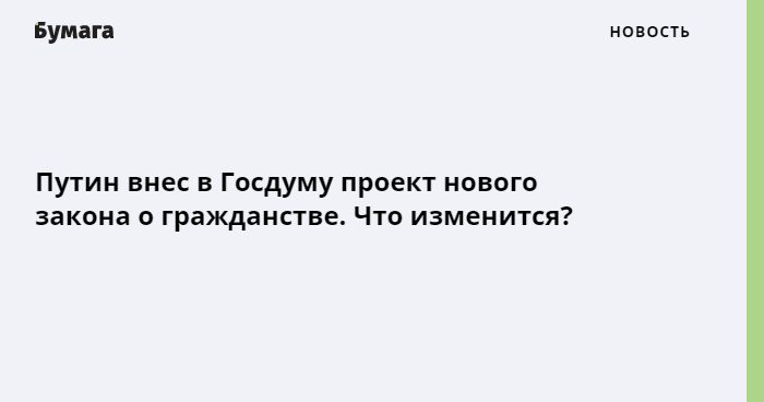 Путин внес в Госдуму проект нового закона о гражданстве. Что изменится?
