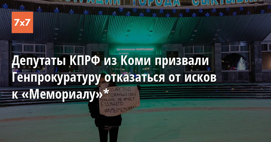 Члены фракции КПРФ в Госсовете Коми призвали Генпрокуратуру России отказаться от иска о ликвидации «Международного Мемориала»*. Ранее Верховный суд ликвидировал организацию по требованию ведомства. Коммунисты считают, что это решение является «глубоко ошибочным». Заявление депутатов опубликовал в Telegram-канале глава фракции КПРФ в республиканском Госсовете Виктор Воробьёв.
