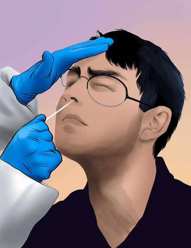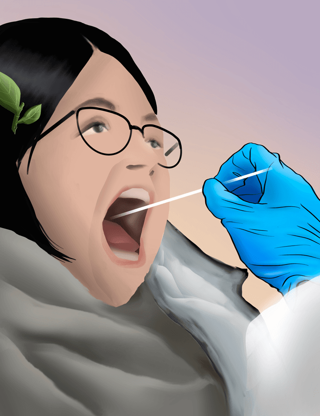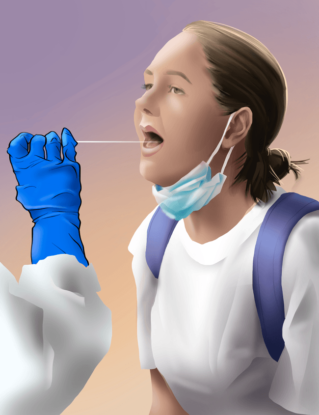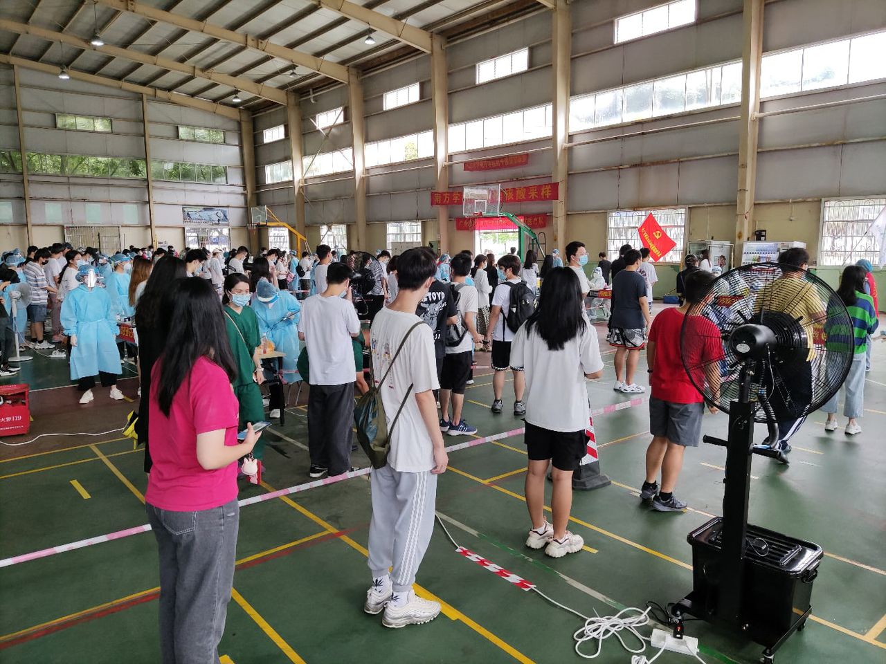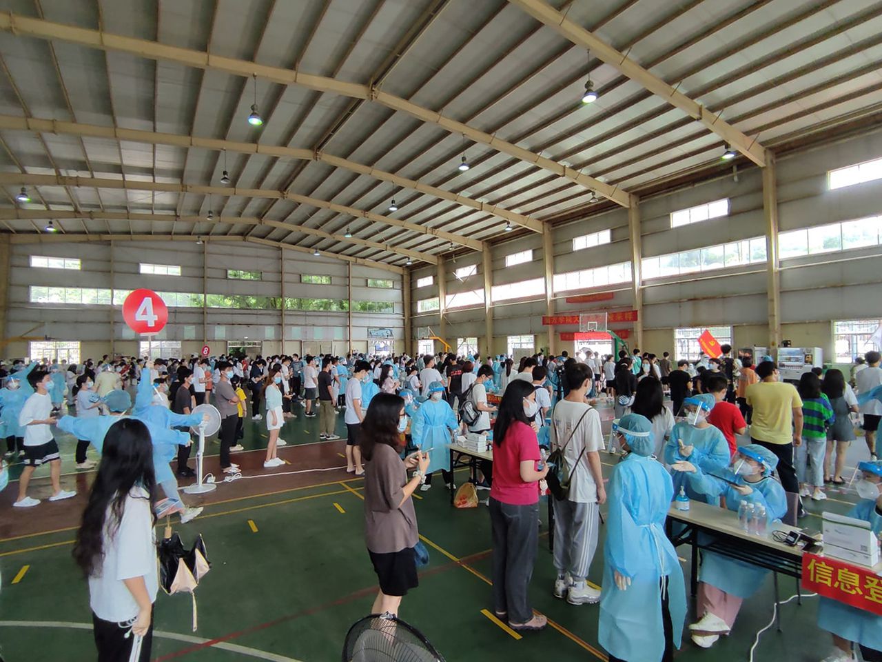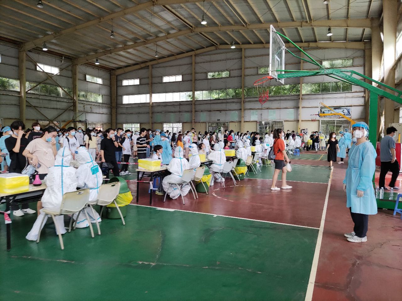 26 июня. Я сняла маску и сделала глоток воды. «Пожалуйста, наденьте маску!» — моментально отреагировала студентка-волонтёр. В студенческом городке шло второе за десять дней массовое тестирование. В рюкзаке у меня, помимо термоска с тёплой водой, были все необходимые для массовых тестирований вещи: документы, телефон, зарядка и повербанк, зонтик, ручка, портативный мини-кулер, батончик шоколада и пачка масок. Складной стульчик не требовался, потому что преподавательский состав тестировали вне очереди. Огромный крытый спортзал был разделён жёлтой лентой на секции, в каждой буквой Т стояли по два стола с медперсоналом в защитной форме. К точкам тестирования без остановки гуськом двигались группы по пять человек. Чтобы не потеряться, кто-то держал впереди идущих за рюкзак или край одежды. Всё это напоминало мероприятия в начальной школе. У первого идущего в колонне была пробирка с номером, куда для ускоренного получения результатов брали сразу по пять тестов.