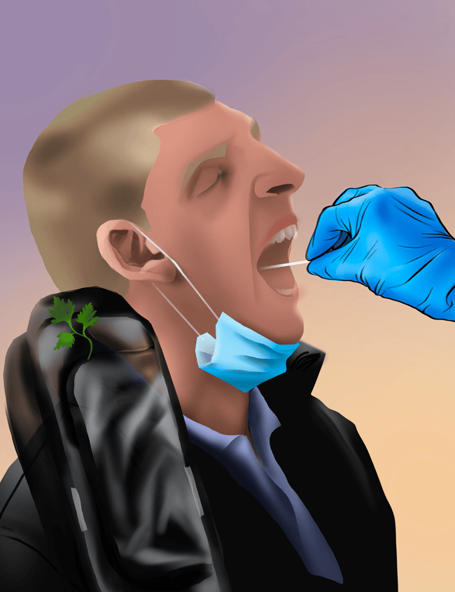 «Срочный» тест оказался срочным только на словах, так как ждать в очереди пришлось целых восемь часов. Вначале все ожидали прибытия ответственных лиц, затем долго расставляли столы для приёма образцов, то параллельно, то буквой Т, то вообще длинным рядком. Расставляли санитайзеры, раскладывали наборы палочек. Откуда-то появились шумные волонтёры. Ещё до приезда врачей всех попросили пройти регистрацию в специальной программе, получить персональный код. А уже после того как приехали люди в белом, ближе к полуночи, ожидающих стали провожать на тест. Из-за большого количества людей в очередях, усталости и невнимательности постоянно происходили какие-то заминки, поэтому измотанный Стивен вернулся домой только в три часа ночи.