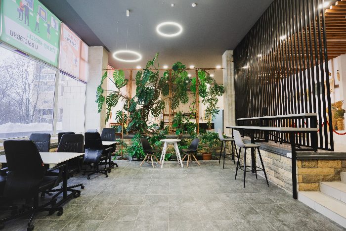 Одно пространство «Просто» открылось в Московском районе на Новоизмайловском проспекте, 48. Его оборудовали коворкингом, переговорными комнатами, лекторием и амфитеатром. Еще одно — в Калининском районе, на проспекте Непокоренных, 16. Здесь также есть коворкинг, лекторий и переговорная комната.