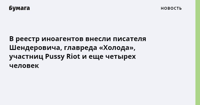 ❗️ В реестр иноагентов внесли писателя Шендеровича, главреда «Холода», участниц Pussy Riot и еще четырех человек