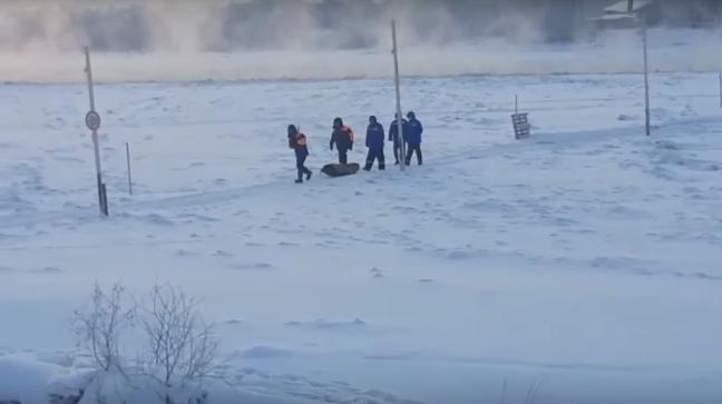 В Архангельске медикам пришлось везти пациентку с инсультом через реку на санках