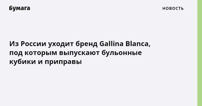 Компания GBFoods, производящая продукты быстрого приготовления под брендом Gallina Blanca, уйдет из России. Об этом пишет «Коммерсантъ».
